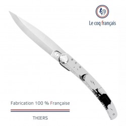 Le Coq Français est un fabricant artisanal français de couteaux à Thiers, capitale de la coutellerie. Les manches sont gravés au laser recto/verso les décors sont de véritables fresques qui vous feront voyager dans un univers mêlant la richesse, la culture et le patrimoine. Vous pourrez vous identifier et retrouver votre propre histoire.